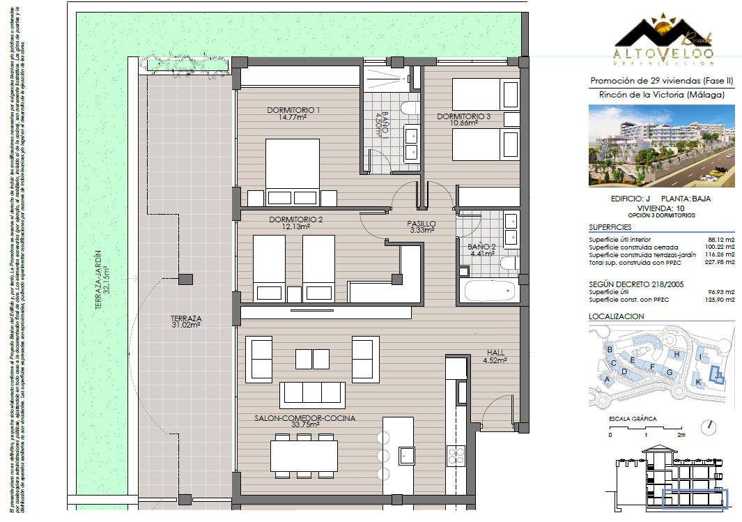 Altoveloo está compuesto por viviendas de 2, 3 y 4 dormitorios, bajos, 1º, 2º y áticos.